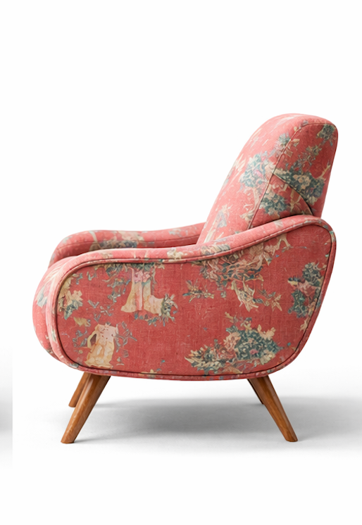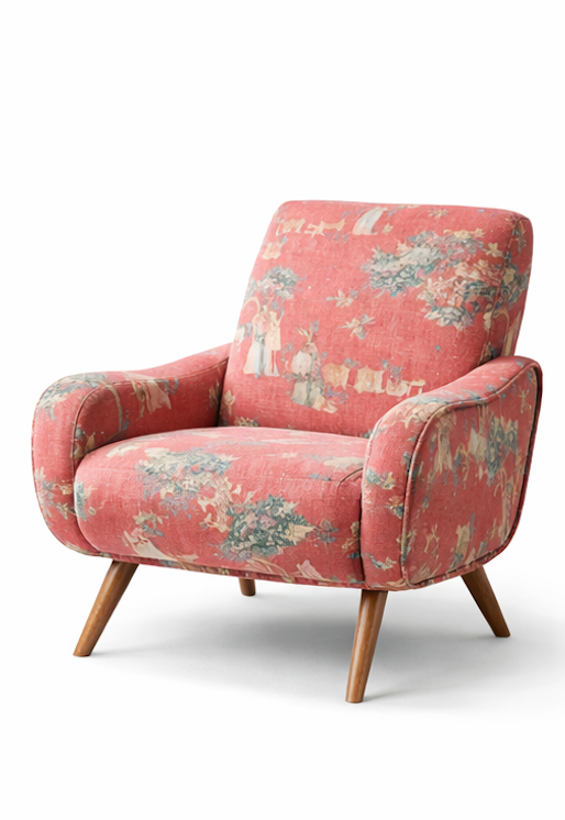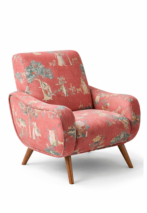 A charming blend of comfort and character, this accent chair stands out with its beautifully patterned upholstery that adds personality and visual interest to any space. The softly contoured form and plush cushioning provide a cozy, supportive seat, while the gently curved arms enhance its inviting silhouette. Set on sleek wooden legs in a warm finish, this chair balances playful design with refined craftsmanship, making it a stylish statement piece for both modern and eclectic interiors.